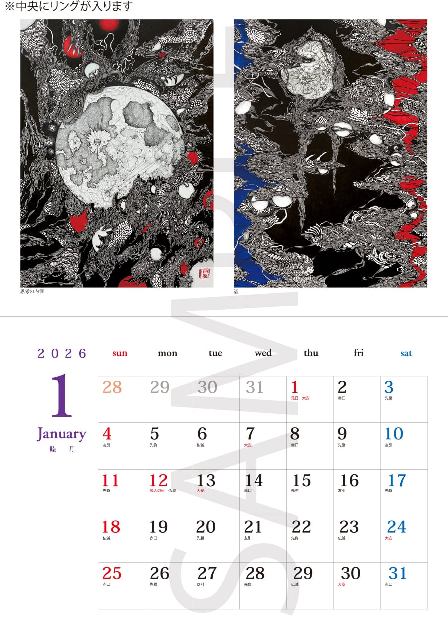 精緻な絵が魅力的で、日々の生活を彩る特別なアイテムとなります。一年を通じて様々な作品と一緒に日々の過ぎゆく時間を感じていただければ幸いです。お部屋の壁に飾ったり目に留まる場所にぜひお使いください。