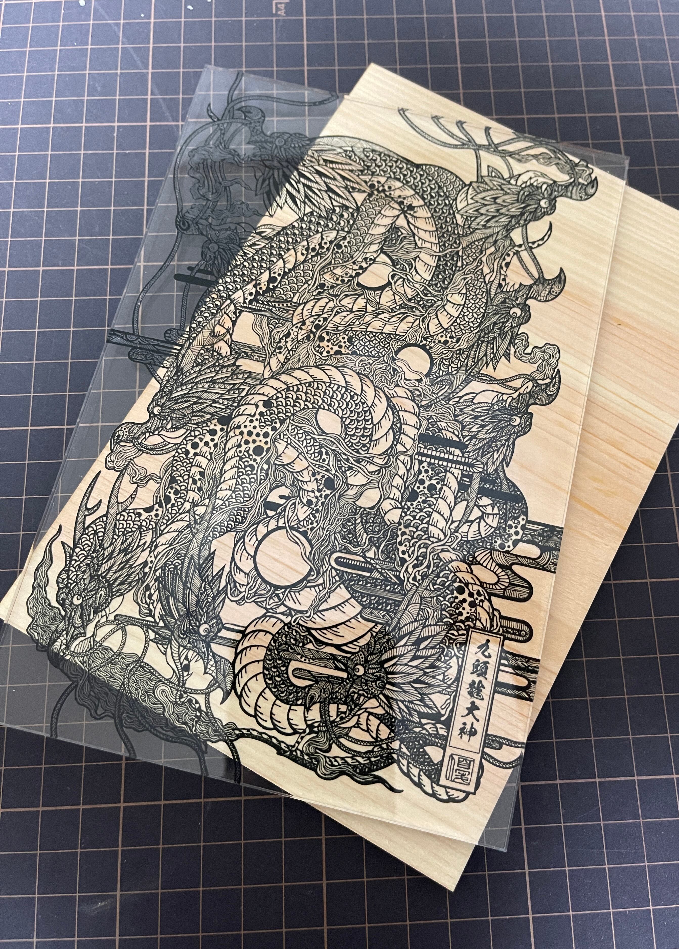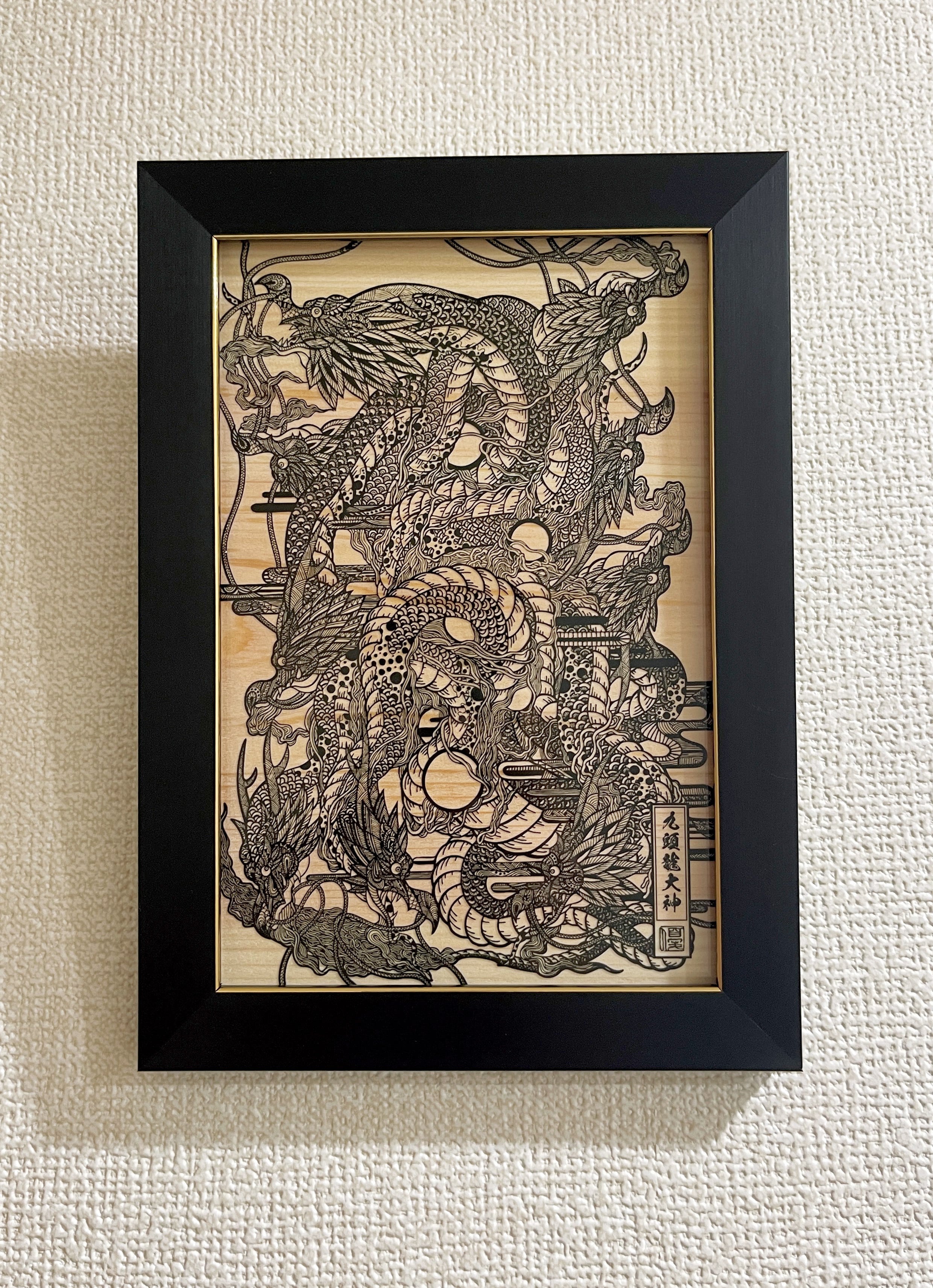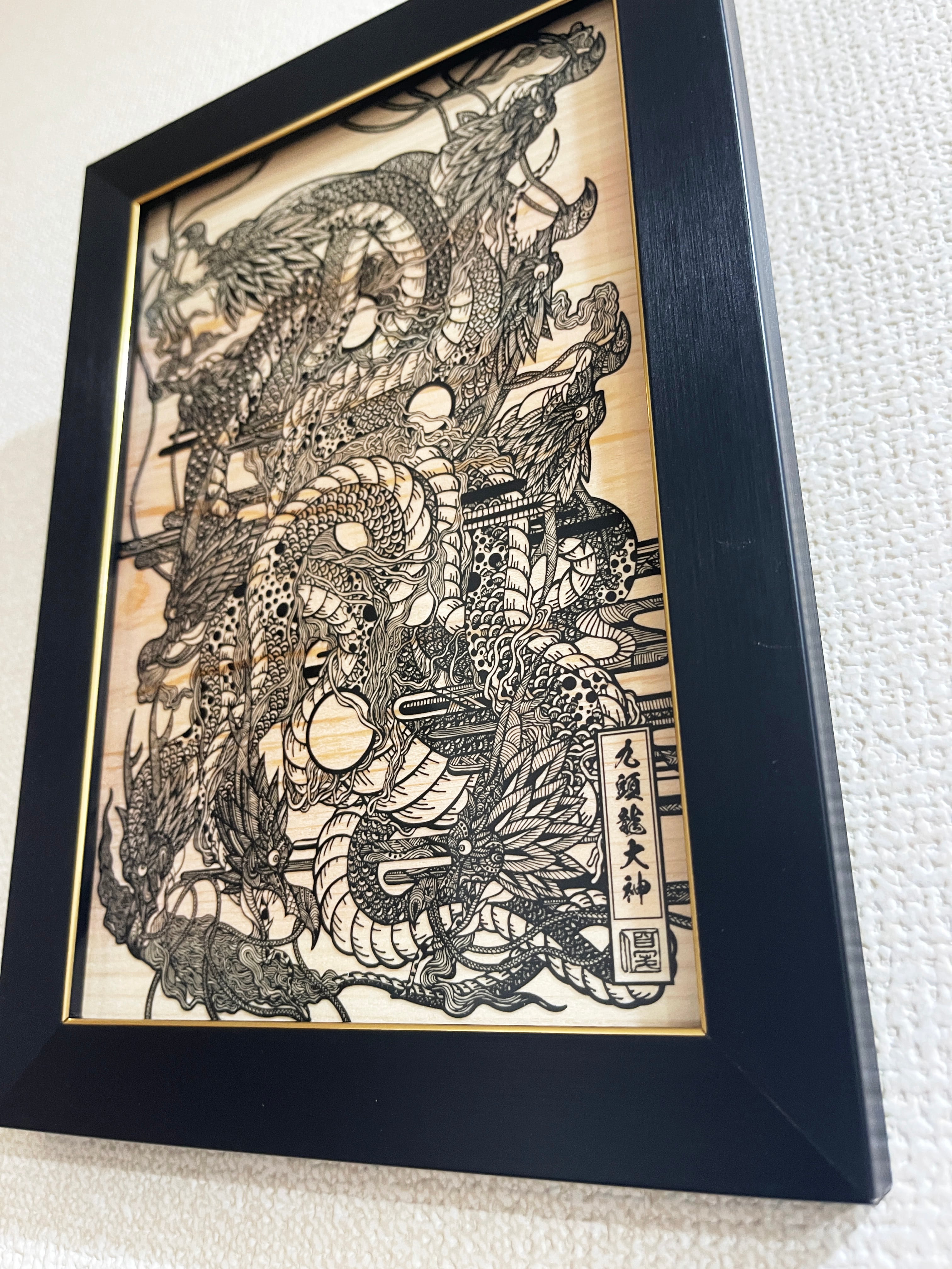 九頭龍大神 アクリル板と檜の二重構造 複製画