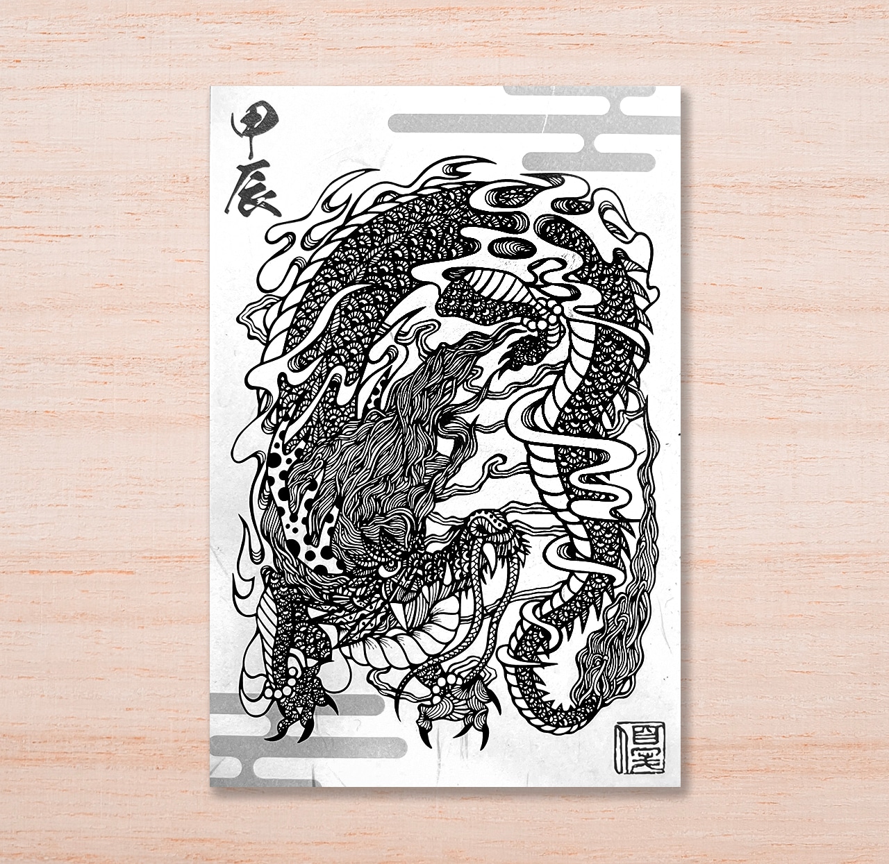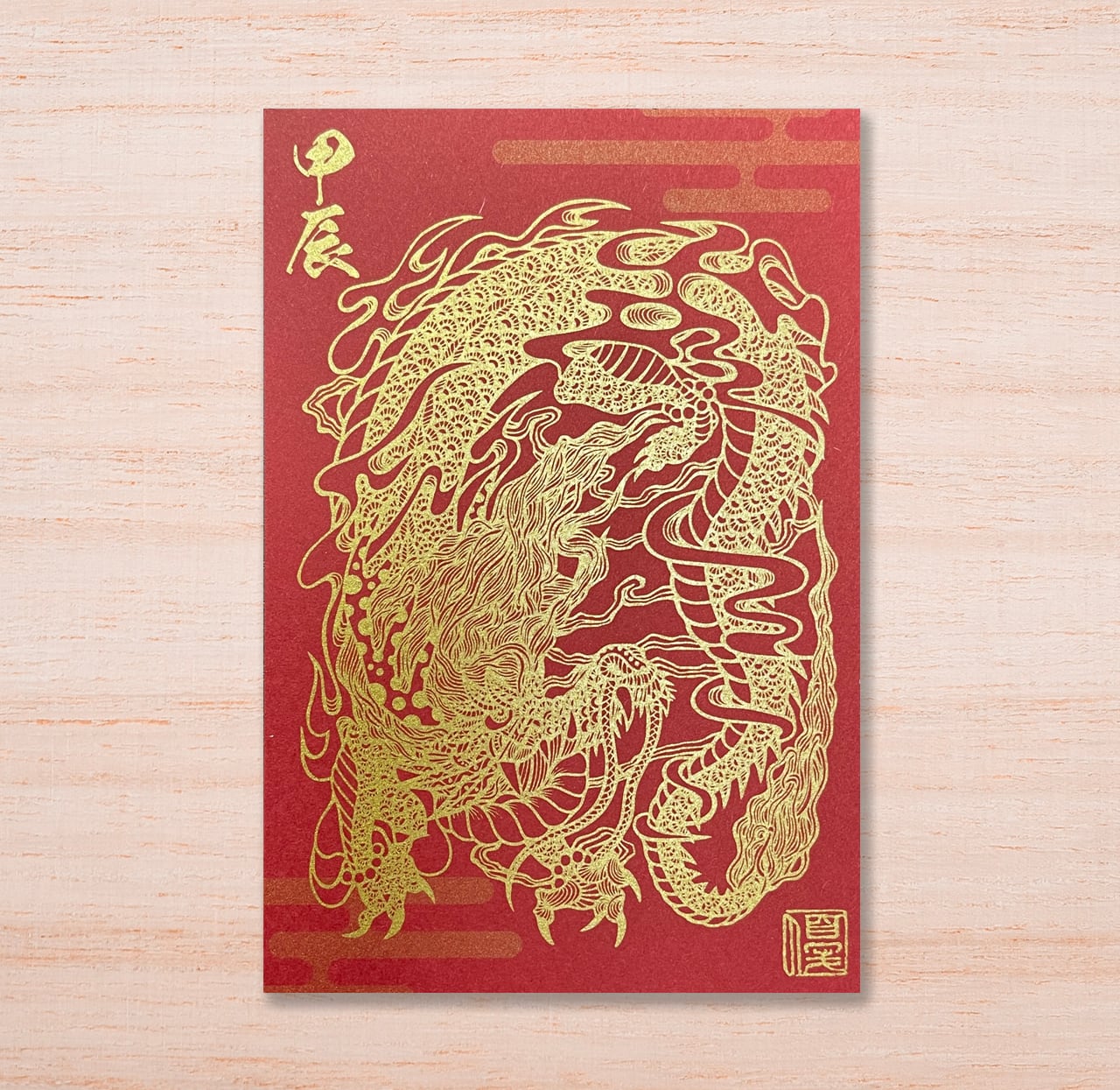 日本で一番緻密! 甲辰ポストカード(黒・赤・白)3枚セット